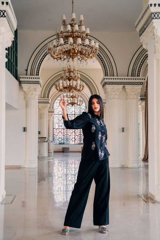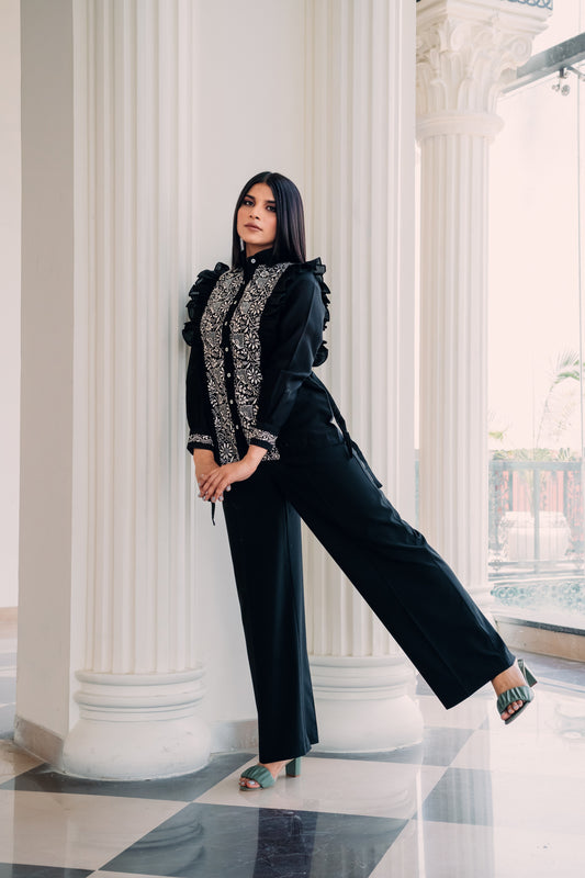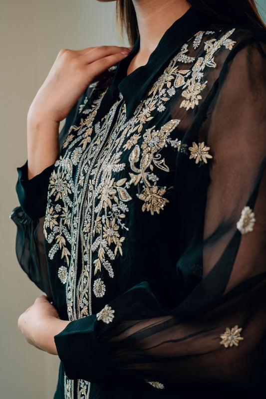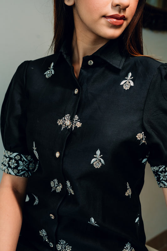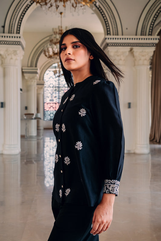 Black Leg-O-Mutton Sleeve Chikankari Shirt