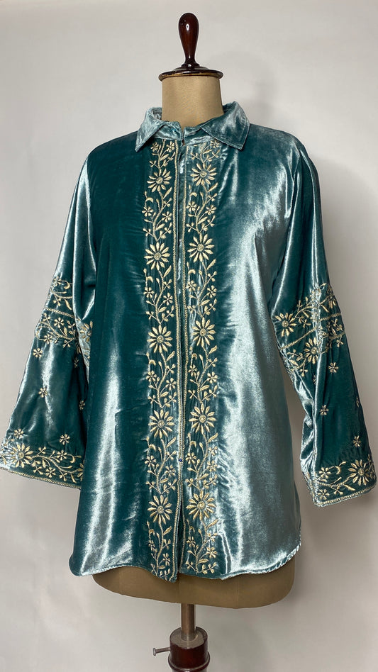 Dark Olive Organza and Silk Chikankari Co-Ord Set