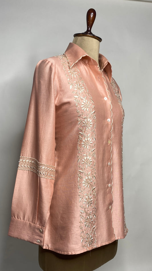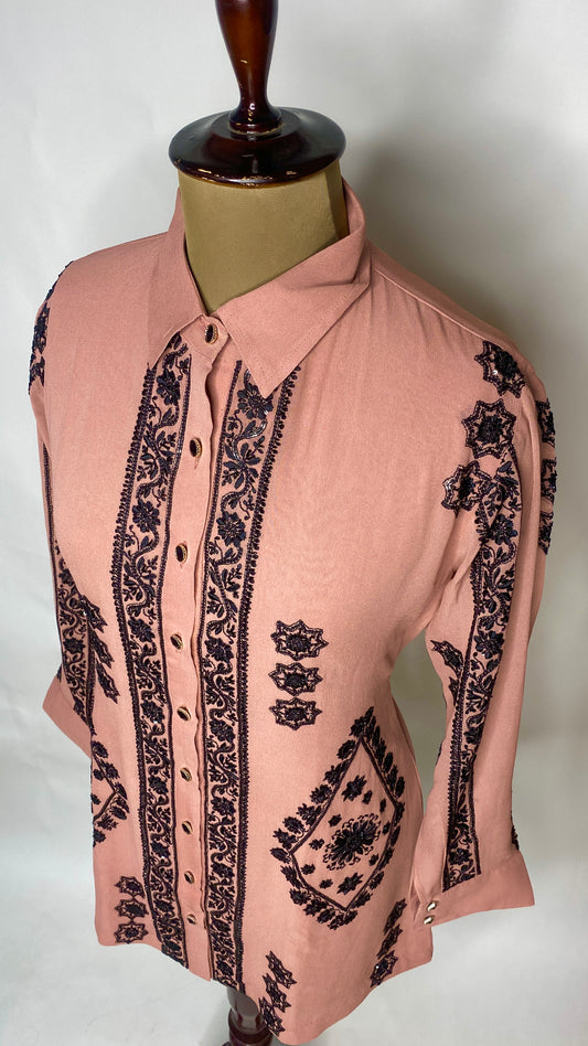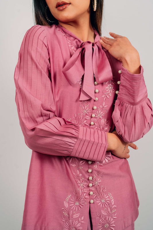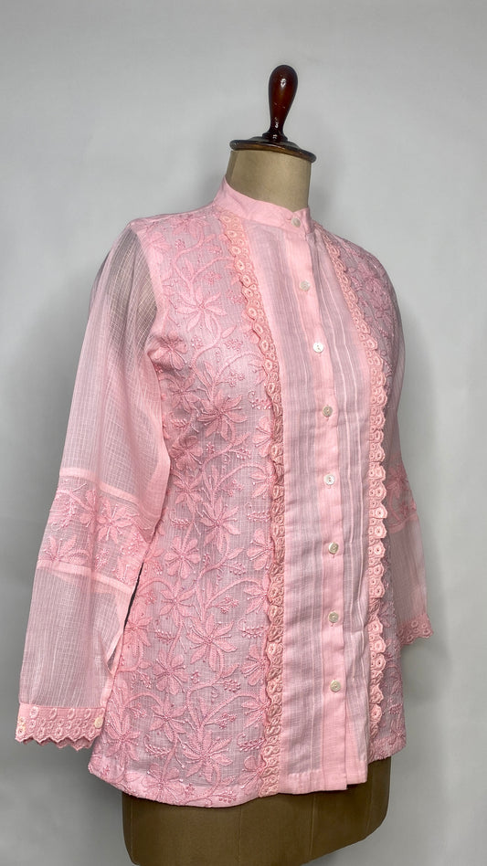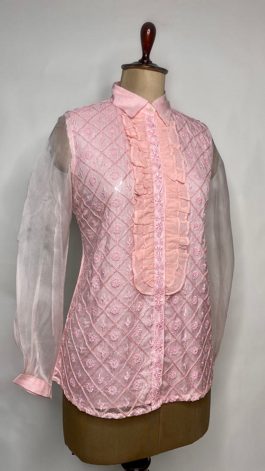 Old Rose Pink Pure Georgette Chikankari Shirt