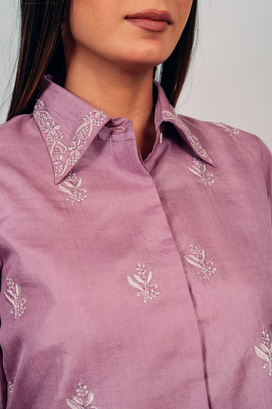Lilac Pure Silk Highlighted Chikankari Shirt