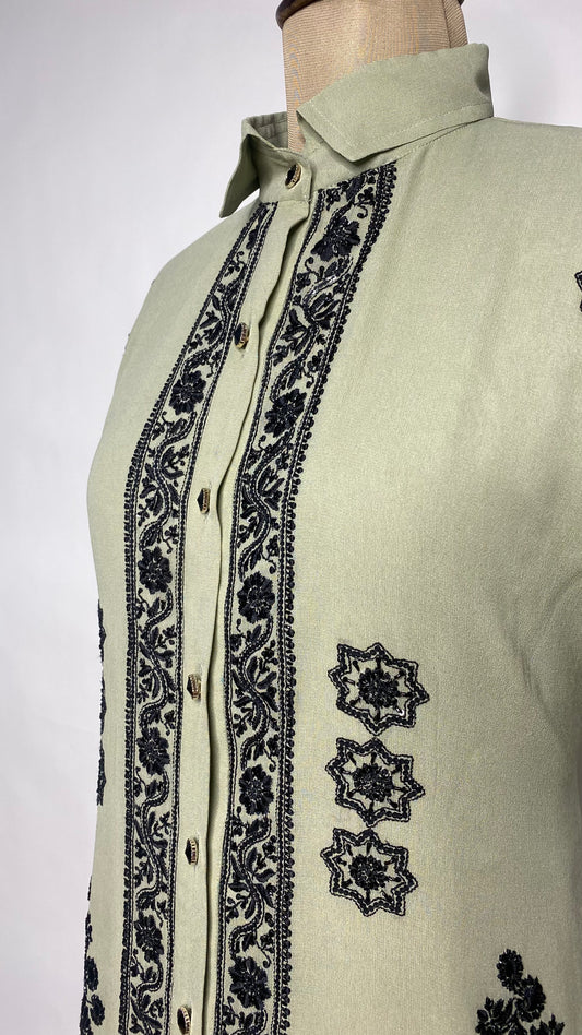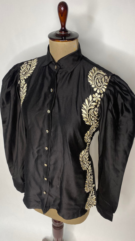 Black Leg-O-Mutton Sleeve Chikankari Shirt