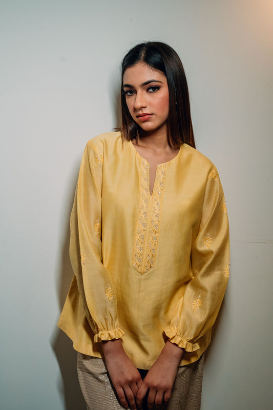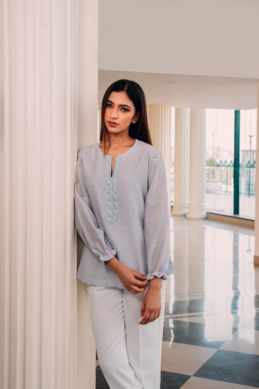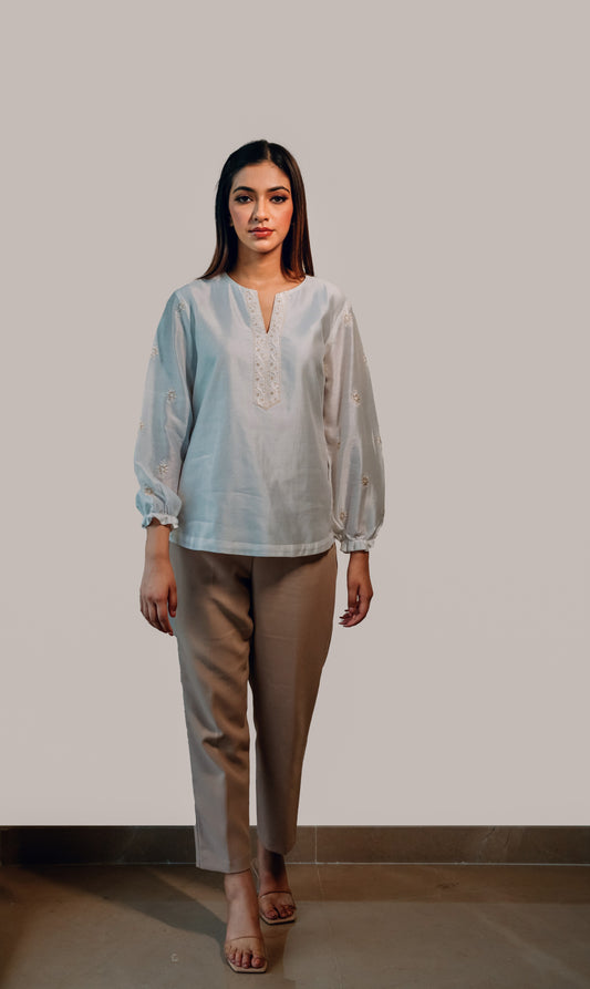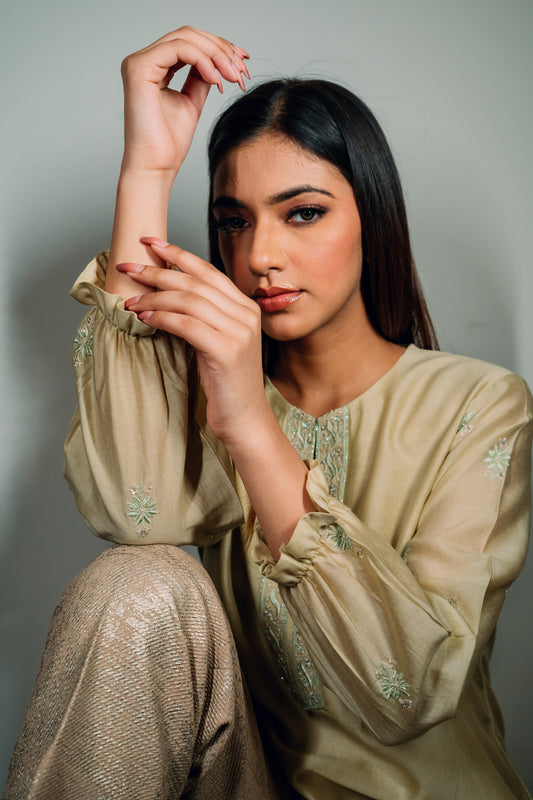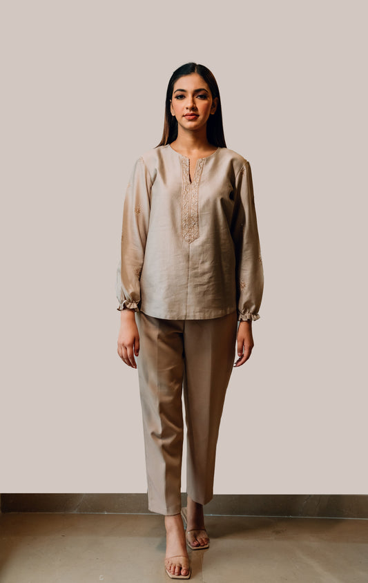 Taupe Brown Chanderi Silk Chikankari Tunic
